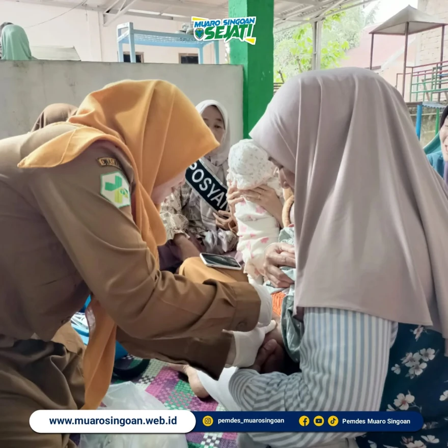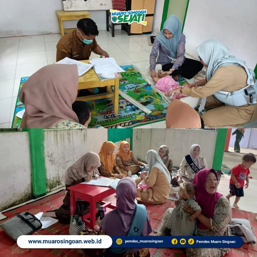 berkolaborasi dengan Kelompok Bina Keluarga Balita (BKB) Bahagia Muaro Singoan menggelar kegiatan pemberian makanan tambahan yang bergizi bagi anak-anak yang terindikasi berada di bawah garis merah dan kuning. Kegiatan ini merupakan wujud nyata sinergi antara dua lembaga penting di tingkat Desa dalam upaya pencegahan dan penanggulangan stunting.