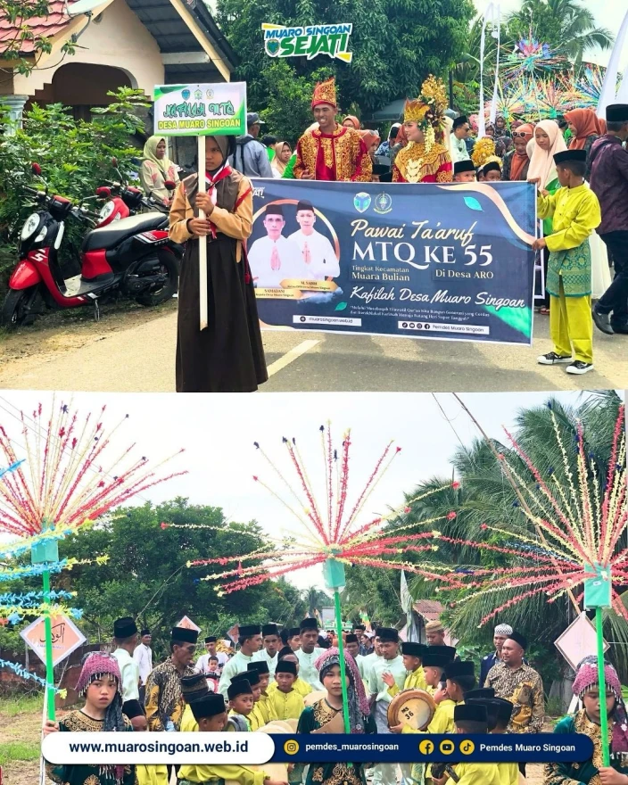 Pawai Ta’ruf MTQ Ke 55 Tingkat Kecamatan Muara Bulian di Desa Aro yang di ikuti oleh kafilah dan seluruh Lapisan Masyarakat Desa Muaro Singoan Terlibat Langsung dalam kegiatan tersebut