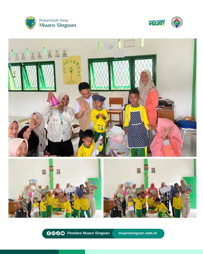 Penyerahan Bahan Baca, Permainan Anak sekaligus Hiasan Kelas untuk TK Istiqomah Dusun Sialang Pungguk Desa Muaro Singoan bersama Mahasiswa Kukerta Unsiba